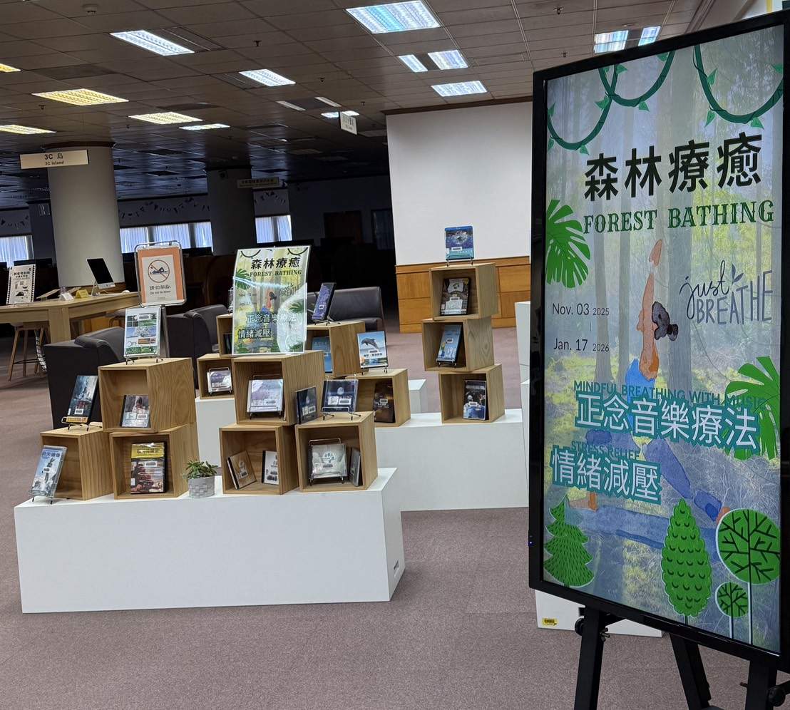 本館特別策劃「森林療癒 X 正念音樂呼吸・情緒減壓」主題展,邀請您暫時放慢腳步,透過閱讀與覺察,重新傾聽內在的聲音。