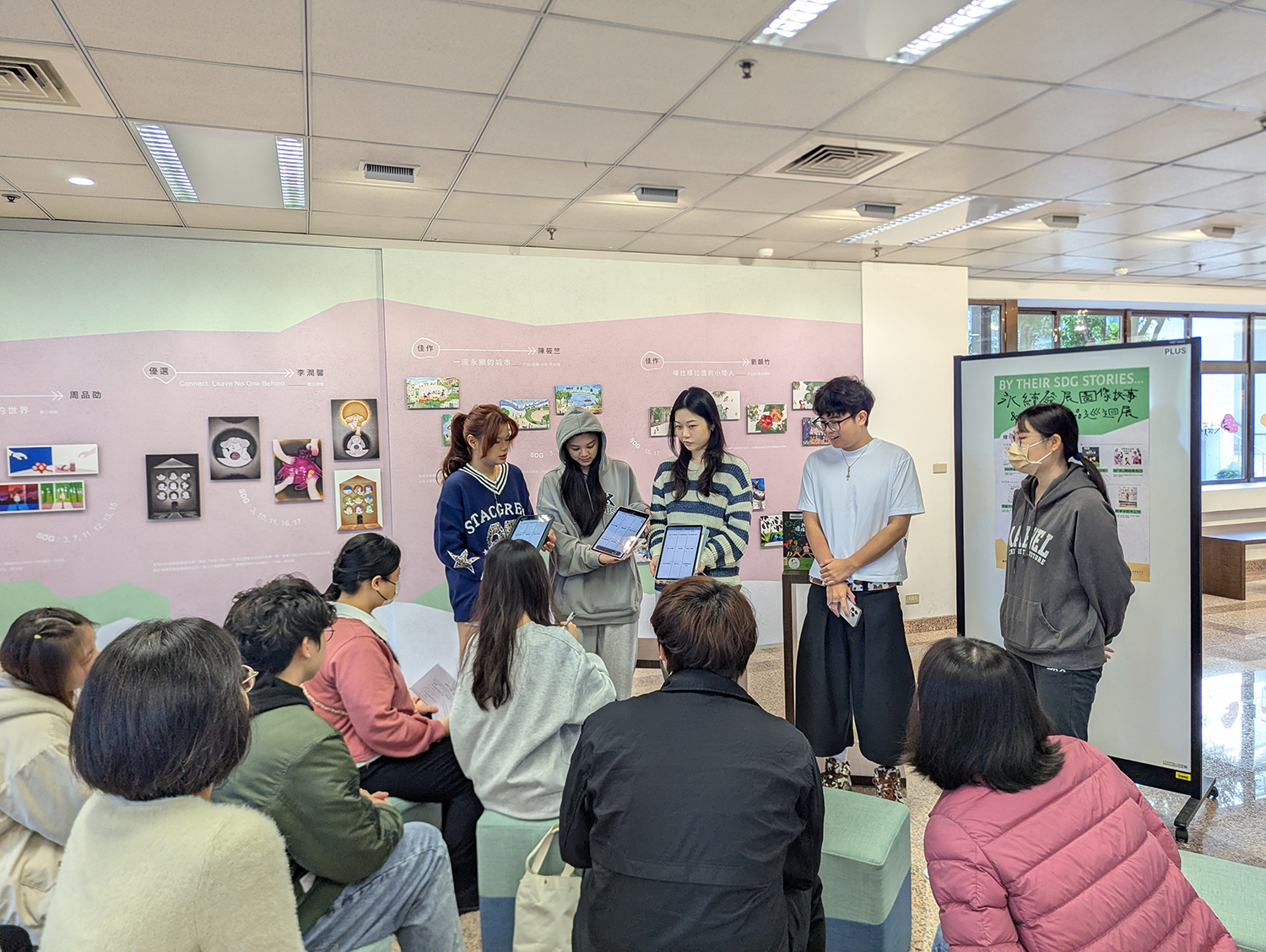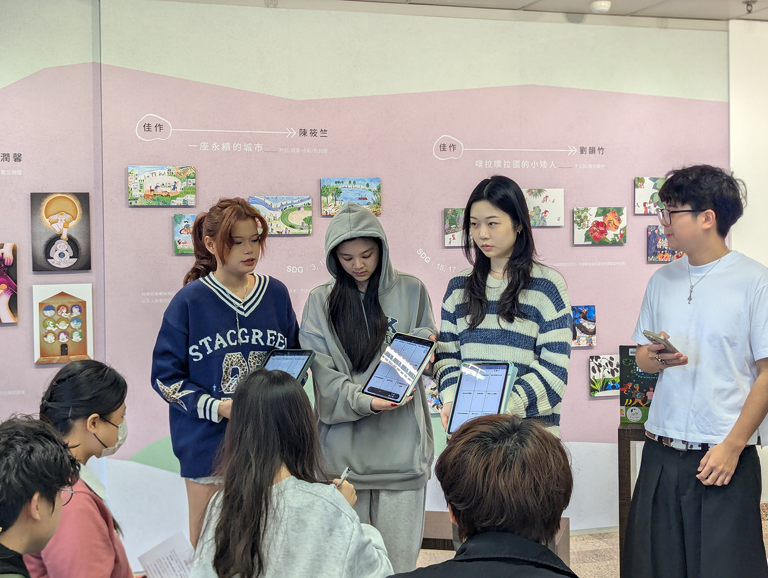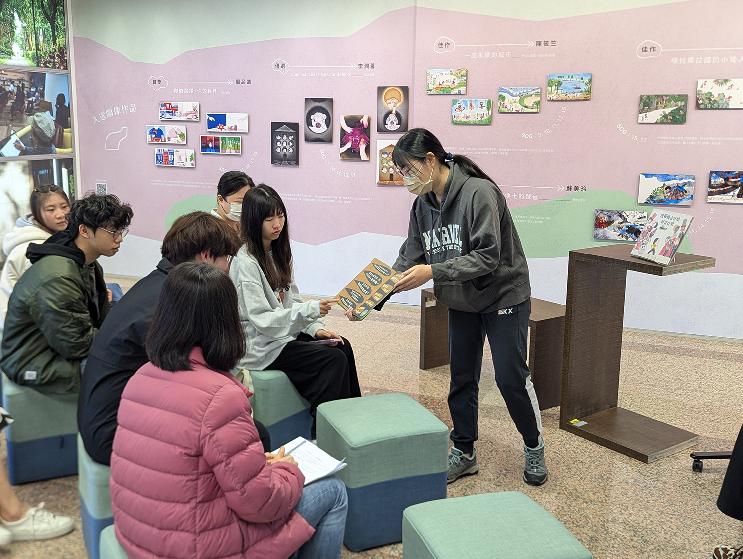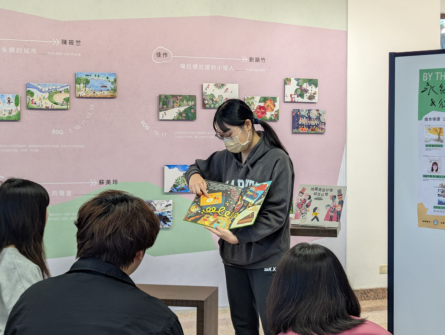 「By Their SDG Stories…」永續發展圖像故事&徵件作品巡迴展 主辦單位:國立臺灣圖書館 淡江大學覺生紀念圖書館 永續發展與社會創新中心 展覽特色: —展出國立臺灣圖書館 5 位得獎圖像作品及藝術家 14 件立體化「廢材」創作,並精選呼應 17 項永續發展目標之相關繪本與圖書。 —結合課程成果,由學生視角呈現生活與公共議題中的永續觀察與回應。 —設置互動留言體驗區,邀請觀眾透過閱讀與藝術,認識並分享永續行動的實踐方式。 展期:114 年 12 月 15 日至 115 年 1 月 17 日 地點:覺生紀念圖書館 2 樓學研創享區