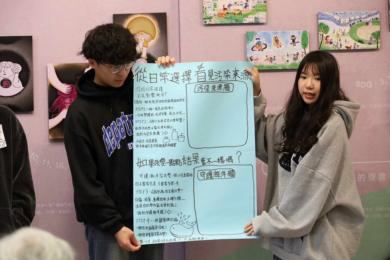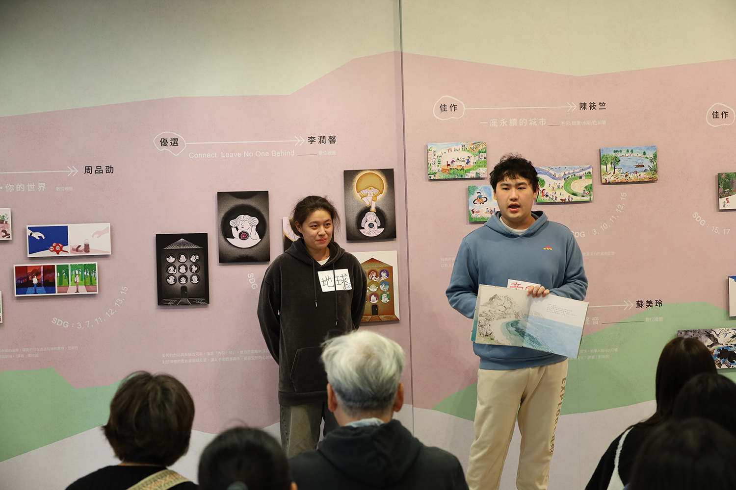 「By Their SDG Stories…」永續發展圖像故事&徵件作品巡迴展 主辦單位:國立臺灣圖書館 淡江大學覺生紀念圖書館 永續發展與社會創新中心 展覽特色: —展出國立臺灣圖書館 5 位得獎圖像作品及藝術家 14 件立體化「廢材」創作,並精選呼應 17 項永續發展目標之相關繪本與圖書。 —結合課程成果,由學生視角呈現生活與公共議題中的永續觀察與回應。 —設置互動留言體驗區,邀請觀眾透過閱讀與藝術,認識並分享永續行動的實踐方式。 展期:114 年 12 月 15 日至 115 年 1 月 17 日 地點:覺生紀念圖書館 2 樓學研創享區