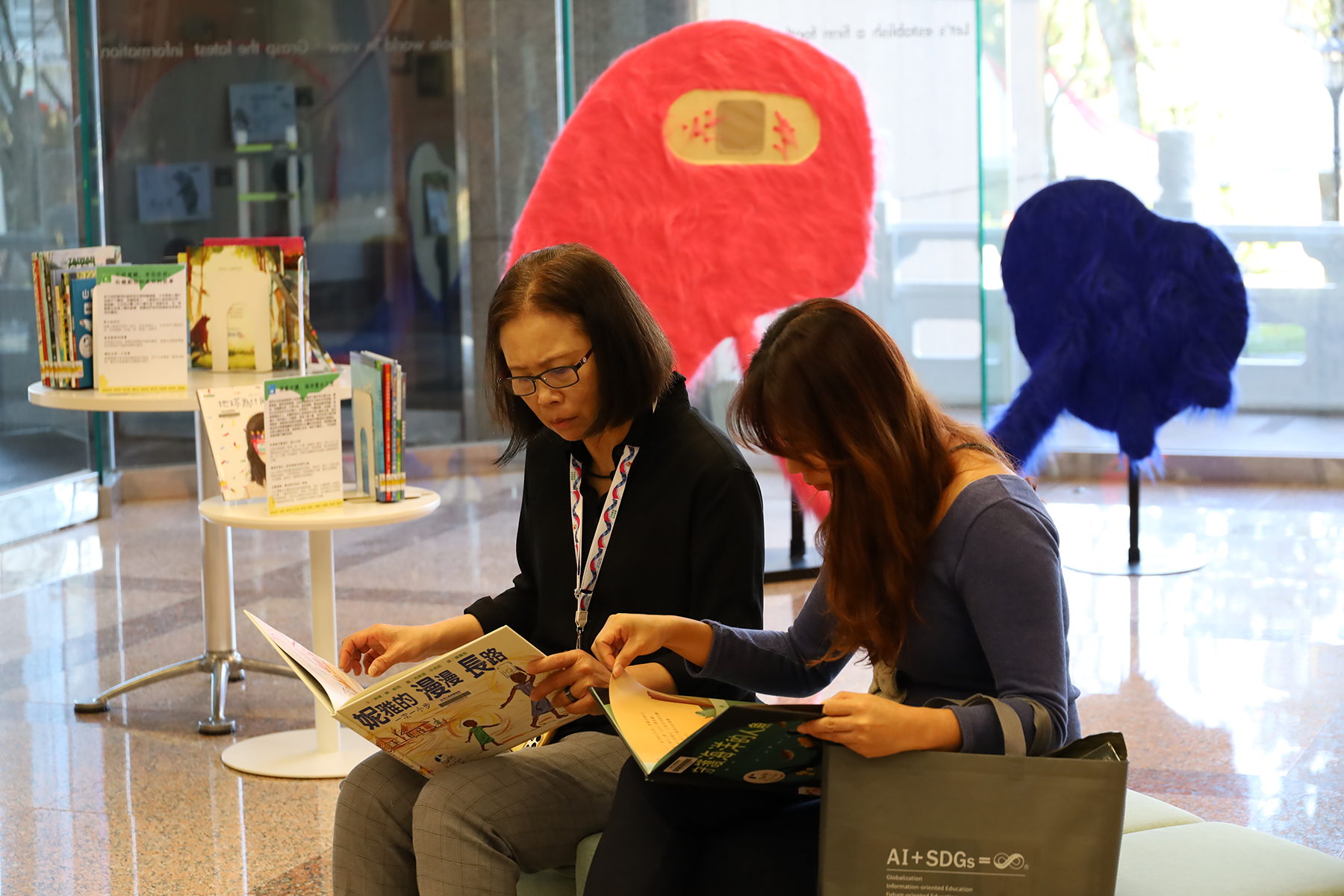 —展出國立臺灣圖書館 5 位得獎圖像作品及藝術家 14 件立體化「廢材」創作,並精選呼應 17 項永續發展目標之相關繪本與圖書。