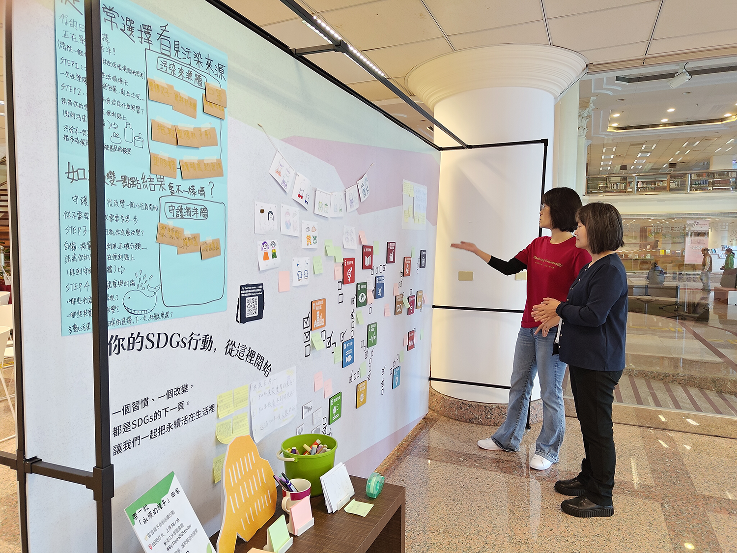 —設置互動留言體驗區,邀請觀眾透過閱讀與藝術,認識並分享永續行動的實踐方式。